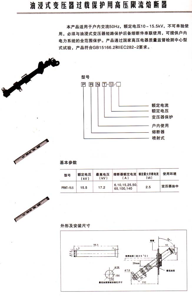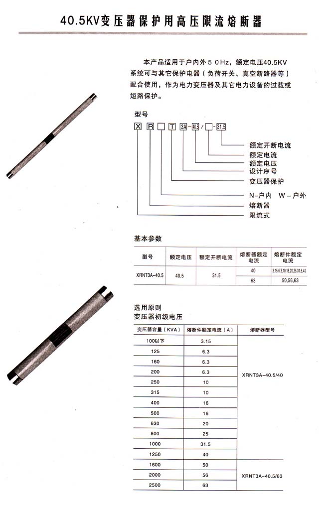 限流式熔管,可以安裝在任何型號的跌落上,F在為了將線路商議安裝的跌落熔斷器直接換成限流熔管,所以,首先生產的型號選擇了RM11型,但由于是限流熔管,所以叫做XRW11型。